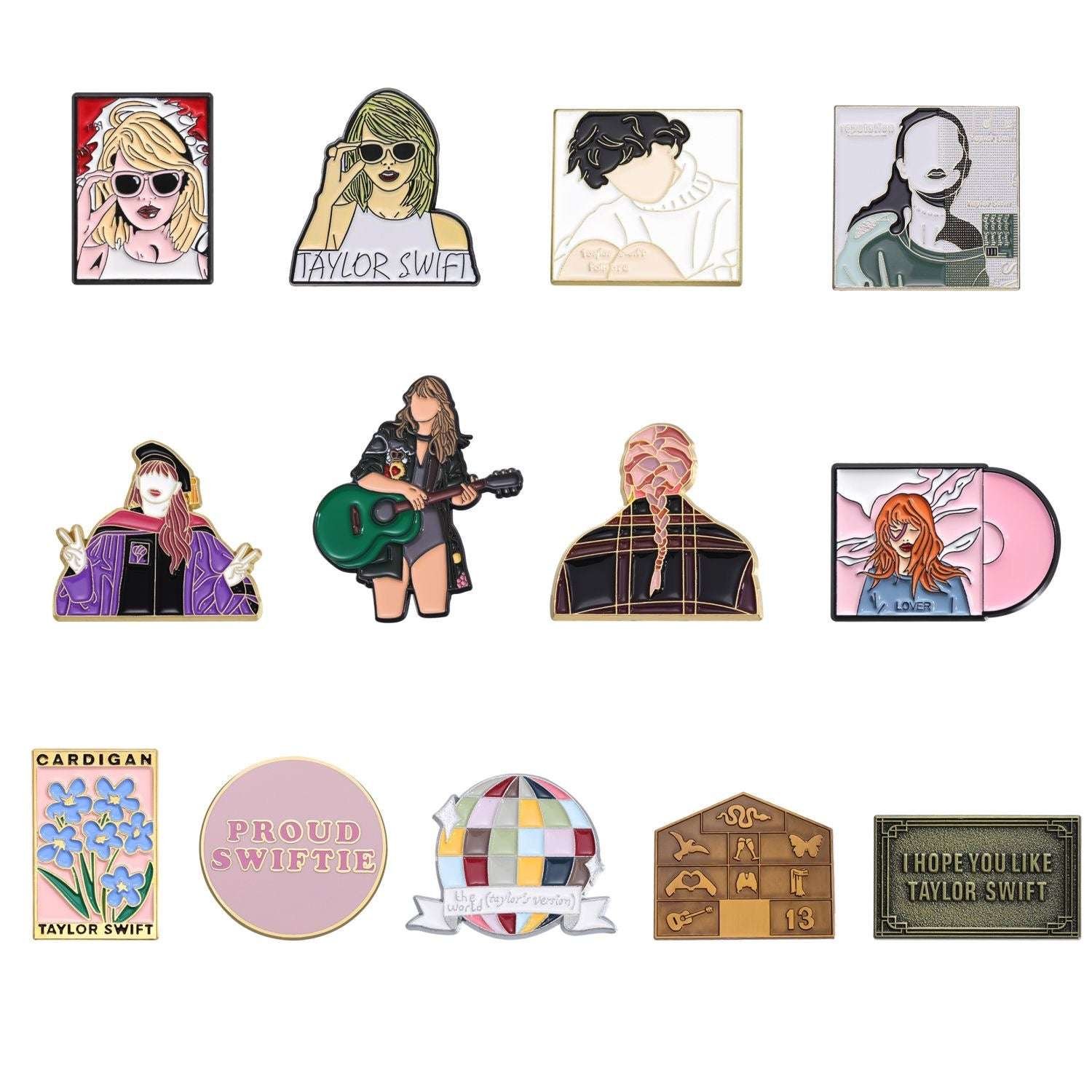 Add a touch of pop culture to any outfit with these Taylor Swift pins. Perfect for fans of the singer, these pins will make a statement without taking themselves too seriously. Pin them on your bag, jacket, or hat for a playful and quirky touch!